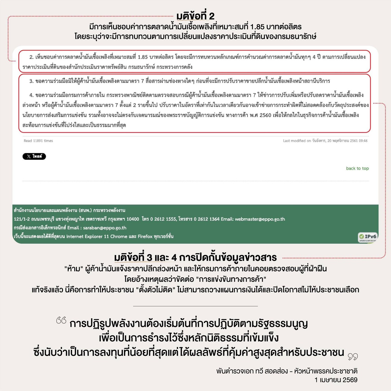 มติข้อที่ 2: การการันตีกำไรให้กลุ่มทุน (1.85 บาทต่อลิตร)