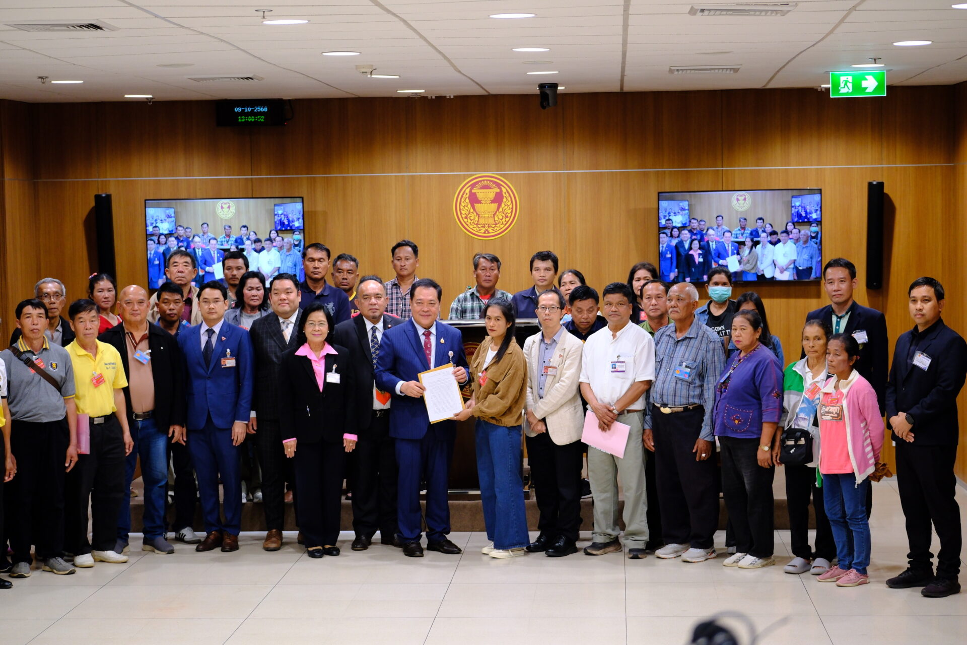 เสียงสะท้อนจาก ‘เหยื่อ' นโยบายรัฐ! พันตำรวจเอก ทวี สอดส่อง หัวหน้าพรรคประชาชาติ สมาชิกสภาผู้แทนราษฎร แบบบัญชีรายชื่อ พรรคประชาชาติ และ อดีตรัฐมนตรีว่าการกระทรวงยุติธรรม ในฐานะประธาน กมธ.ฯ รับหนังสือกลุ่มมวลชน ยื่นข้อเสนอ ร่าง พ.ร.บ.นิรโทษกรรมผลกระทบจากนโยบายที่ดินและป่าไม้